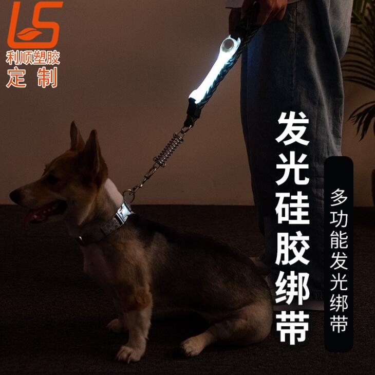 寵物牽引繩LED發(fā)光硅膠綁帶